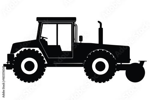 © fatimatz, Fototapeta premium Isolated Silhouette of Farm Tractor with Cab, Exhaust, and Roller Attachment on a White Background