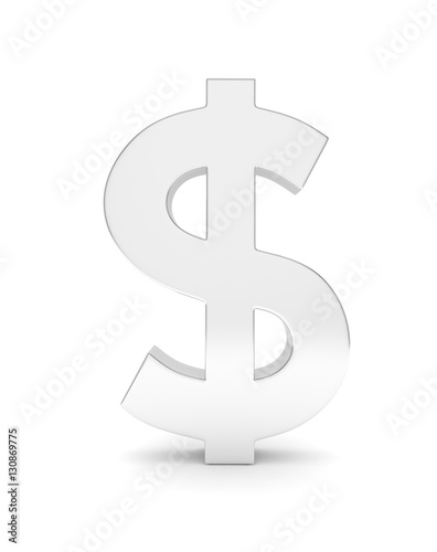 © Natalia Merzlyakova, Fototapeta premium Isolated silver dollar sign on white background. American currency. Chrome silver economy symbol. 3D rendering.