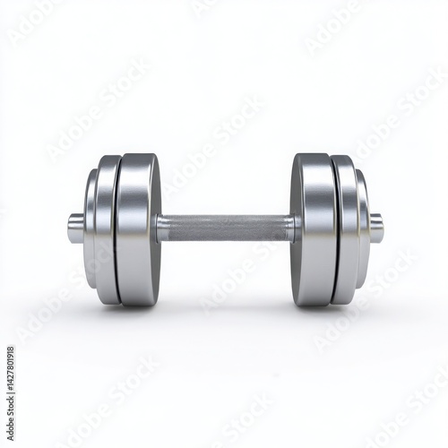 © Mishrat, Naklejka premium Isolated silver dumbbell with multiple weights on a white studio background