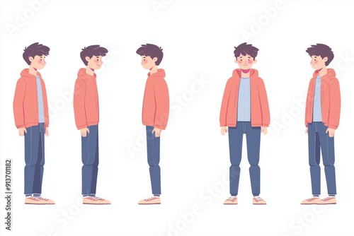 © CK444, Obraz premium Isolated Simple Basic Drawn Male Character Pose Sheet on Blank White Generative Illustration