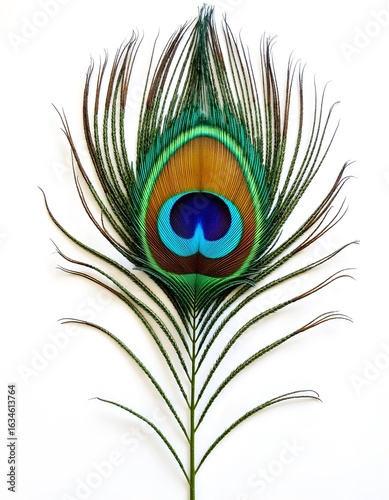 © hendrizvd, Fototapeta premium Isolated single peacock feather on white