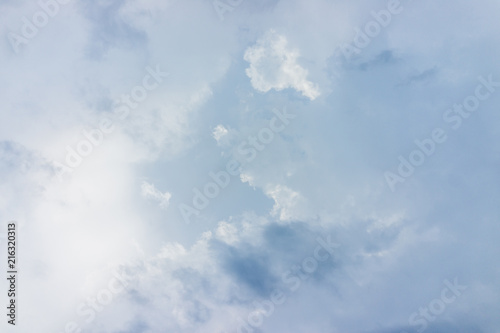 © Kristina Blokhin, Fototapeta premium Isolated sky cloudscape with fluffy clouds and bright sun with soft rays during solar eclipse Virginia