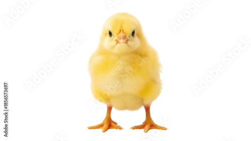 Fototapeta premium Isolated Small Yellow Chick Standing Upright, Looking Forward with a Downward...
