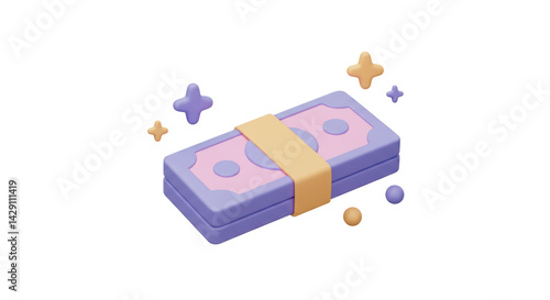 © Nicolas, Obraz premium Isolated Stack of Money with Sparkles