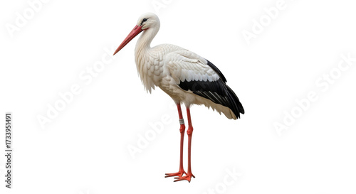 Fototapeta premium Isolated stork standing tall looking right, elegant bird with white and black...