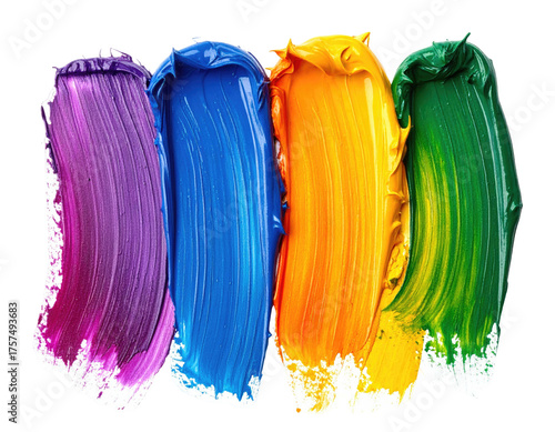 Fototapeta premium Isolated strokes of vibrant, textured paint in purple, blue, orange, and...