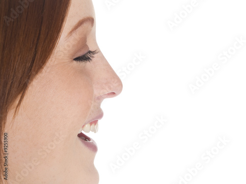 © David Gilder, Obraz premium Isolated studio shot of a laughing businesswoman's profile
