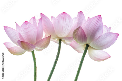 © Elena, Fototapeta premium Isolated Stunning Low-Angle View of Three Lotus Flowers