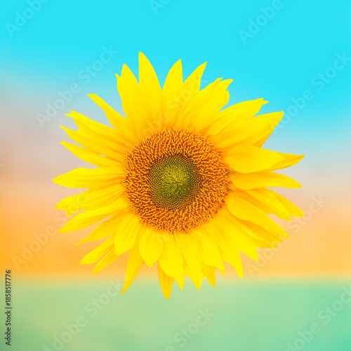 © audaxl, Fototapeta premium Isolated Sunflower against a blurry summery background