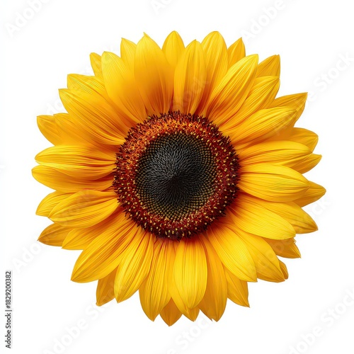© DiahCreative, Fototapeta premium Isolated Sunflower Blooming With Bright Yellow Petals and Brown Center on White Background