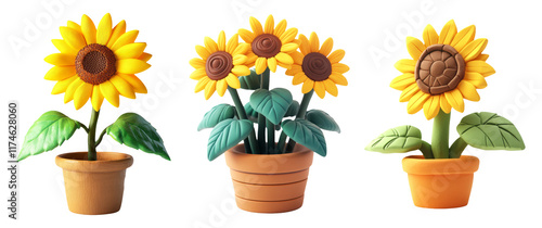Obraz premium Isolated Sunflower Collection with Pots on Transparent Background