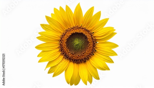 © Zakia, Fototapeta premium Isolated sunflower in full bloom with yellow petals and brown-green center on white background