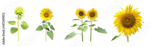 © Sophon_Nawit, Obraz premium Isolated sunflower plants, flower head, leaf and top on transparent background.