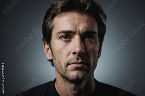© ThomasLENNE, Obraz premium Isolated thinking man face looking up
