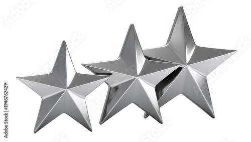 Obraz premium Isolated three realistic shiny metallic silver stars in increasing size,...