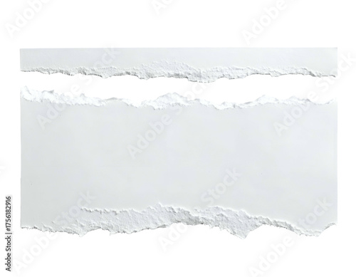 © Random, Obraz premium Isolated torn white paper strip with textured edges on a black background, design element