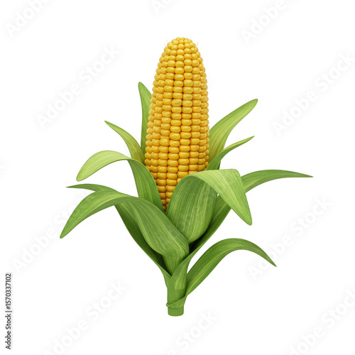 © Harry, Obraz premium Isolated Transparent Background Corn Ear Cob Yellow and Green Leaves