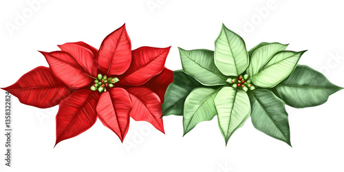 Obraz premium Isolated Transparent Background with Red and Green Poinsettia Flowers