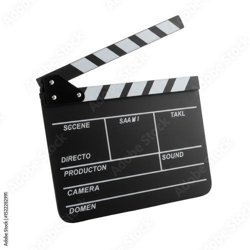 Fototapeta premium Isolated Transparent Clapperboard Black Film Slate Action Movie Production