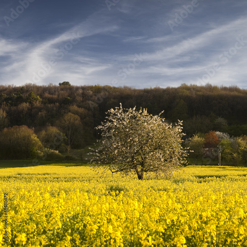Obraz premium Isolated tree in rapeseed field