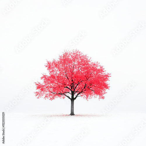 © Md Alamgir Artworks, Fototapeta premium Isolated tree with vibrant red leaves on a plain white background