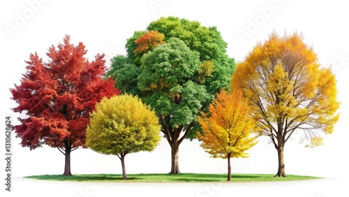 Naklejka premium Isolated Trees, White Background Panoramic Photography: High-Resolution Images of Single Trees on White