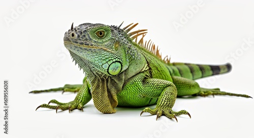 © Slamat, Fototapeta premium Isolated Tropical Iguana Lizard Resting on Bright White Backdrop