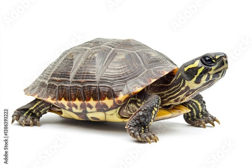 © Dzikrul Husnani, Fototapeta premium Isolated Turtle Walking Against White Background Capturing the Wildlife Animal
