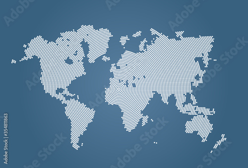 Obraz premium Isolated vector dotted world map on blue background. Computer abstract...