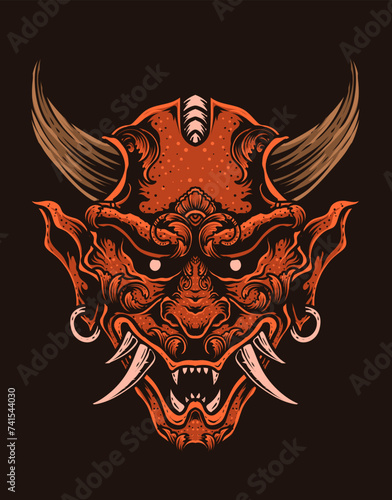 © Bayu, Obraz premium Isolated vector hannya mask, Traditional japanese demon mask - Vector illustration