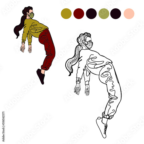 Obraz premium Isolated vector illustration of a cute girl. Young woman as a print, blank...