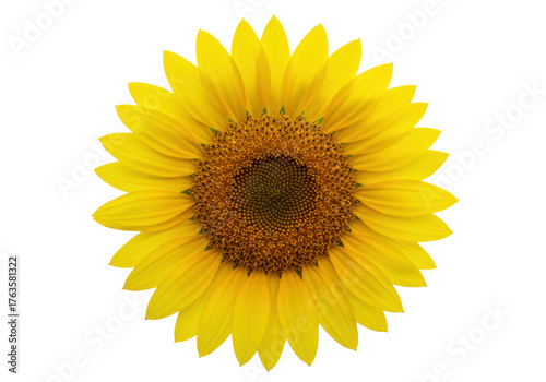Fototapeta premium Isolated vibrant sunflower with detailed center and bright petals, closeup of...
