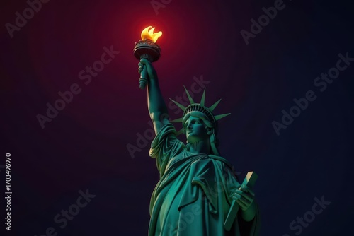 © haruki, Fototapeta premium Isolated view of Liberty's torch and crown, dramatic lighting, detail, crown, view