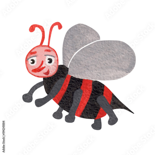 © ellinanova, Fototapeta premium Isolated watercolor bee on white background