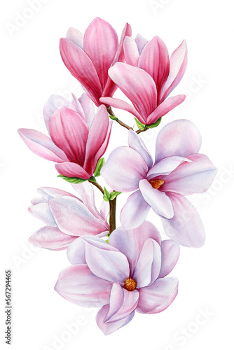 © Hanna, Fototapeta premium Isolated watercolor magnolia flower. Greeting card. Botanical flowers set with magnolia flowers.