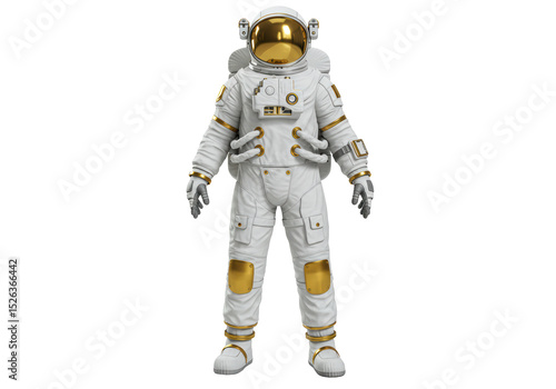 Fototapeta premium Isolated White and Gold Astronaut Standing Upright