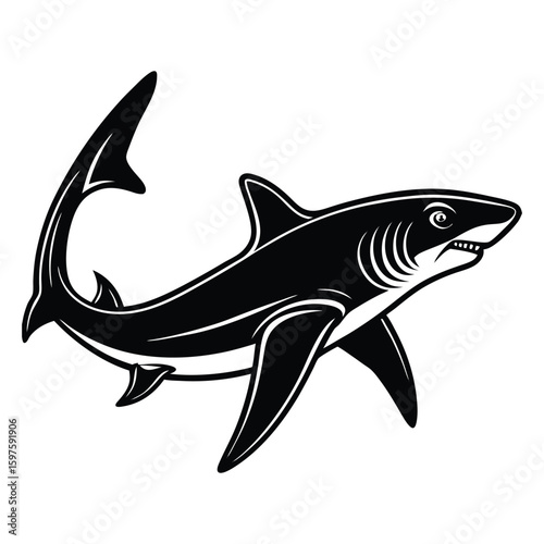 © Antar, Obraz premium Isolated white background vector cartoon illustration of a shark