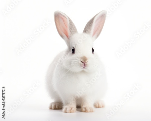 © Serhii, Obraz premium Isolated White Bunny on White Background. Cute Fluffy Pet Rabbit with Soft White Fur, a Delightful
