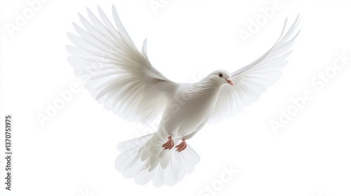 © konsak, Obraz premium Isolated White Dove in Flight