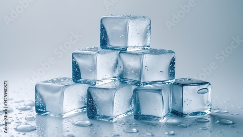 © AugmentArt, Obraz premium Isolated white ice cube rendering on abstract water background