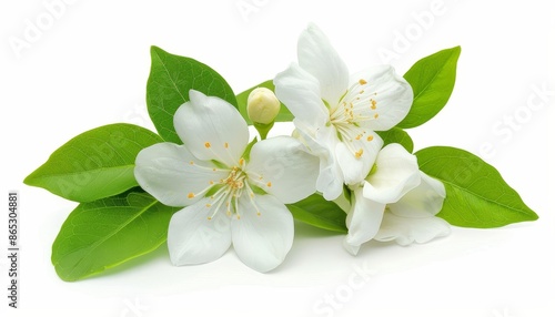 © LimeSky, Fototapeta premium Isolated white jasmine flower with leaves
