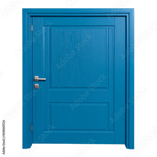 © wanna, Fototapeta premium Isolated wooden blue front door on a white background