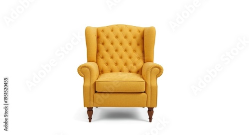 © pngking, Obraz premium Isolated yellow armchair with art deco quilted pattern seen from front on white background with clipping path