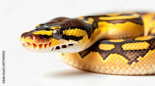 © AkuAku, Fototapeta premium Isolated yellow belly ball python on white background