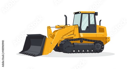© siswo, Fototapeta premium Isolated Yellow Bulldozer on White Background Heavy Construction Vehicle