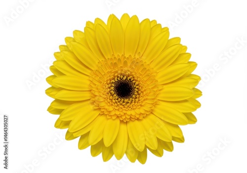 © stock.metket.com, Fototapeta premium Isolated yellow gerbera daisy flower with a dark center on a white background, showcasing its vibrant color and texture