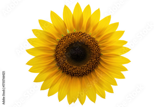 © Percival, Fototapeta premium Isolated yellow sunflower blossom with a dark brown center for oil, seeds, honey, and food