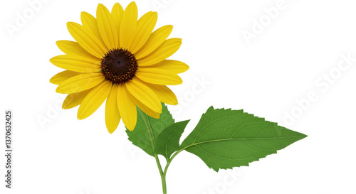 Obraz premium Isolated Yellow Sunflower with Green Leaves