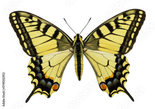 © Maros, Fototapeta premium Isolated Yellow Swallowtail butterfly with open wings close up on a neutral background