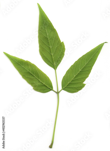 © Olga Mishyna, Obraz premium Isolated young green leaf onwhite background.